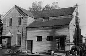 built about 1861 of sandstone and adobe faced with red brick and